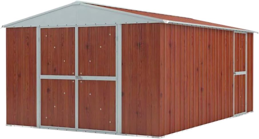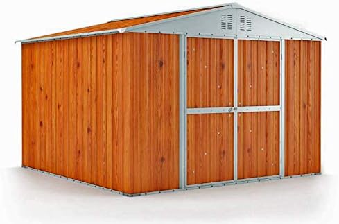 Box casetta da giardino in acciaio zincato 327x269x217 cm finitura legno 8,80 m² in lamiera per esterni deposito attrezzi e organizzazione giardino