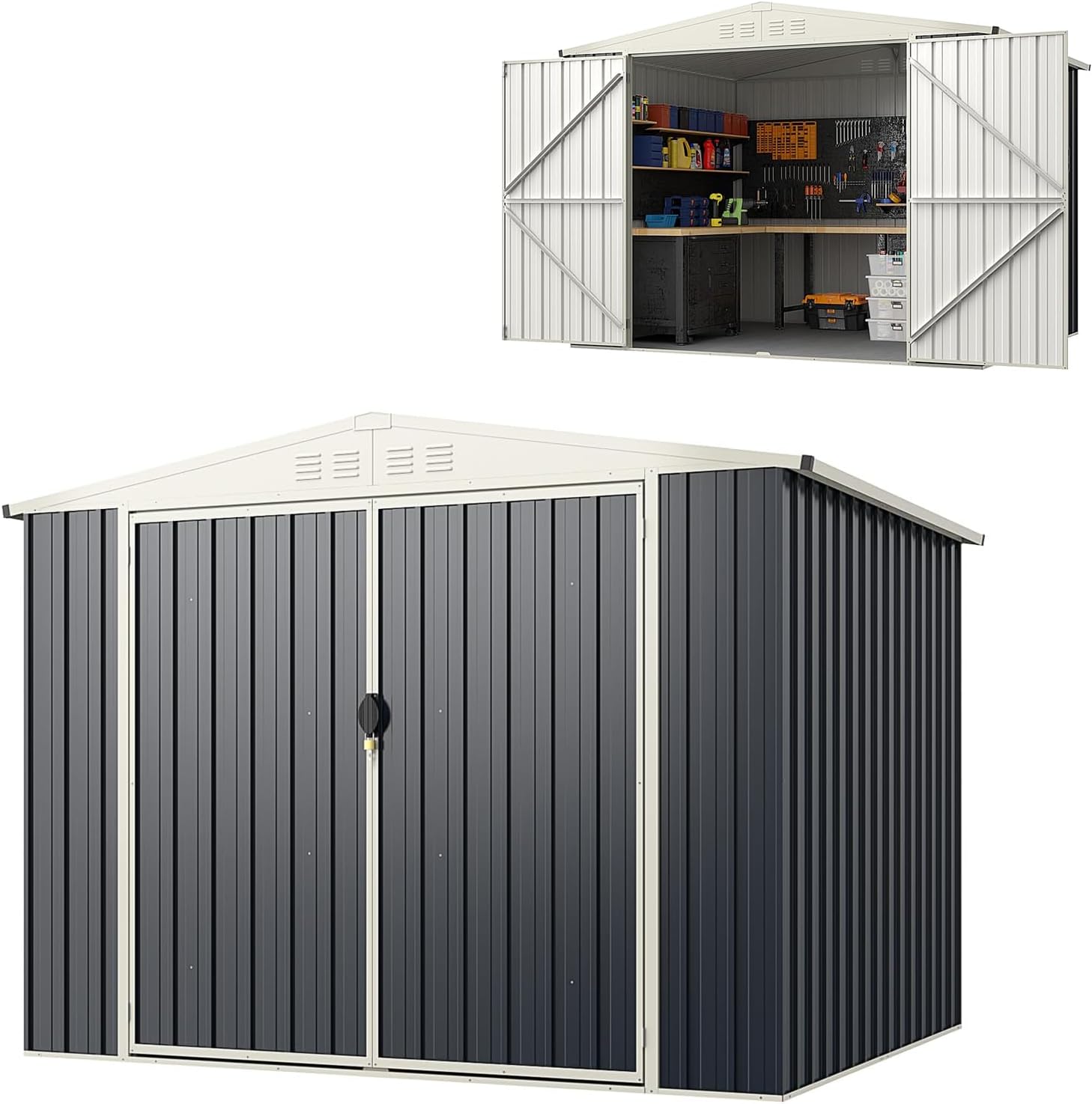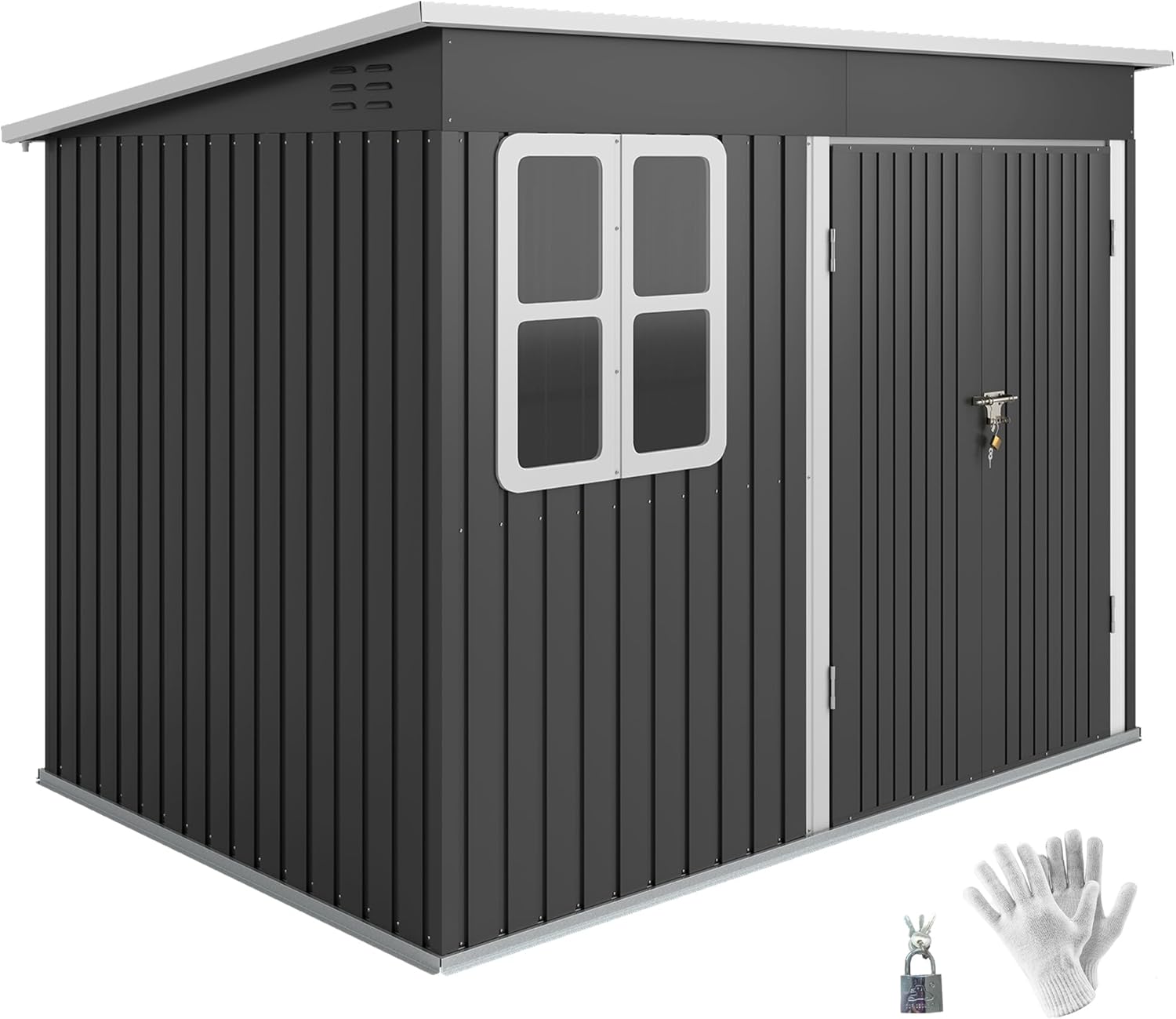 Outsunny casetta da giardino in acciaio con finestra e porta con serratura garage per biciclette e attrezzi 260 x 177 x 190 cm 4,13 m³ colore grigio scuro