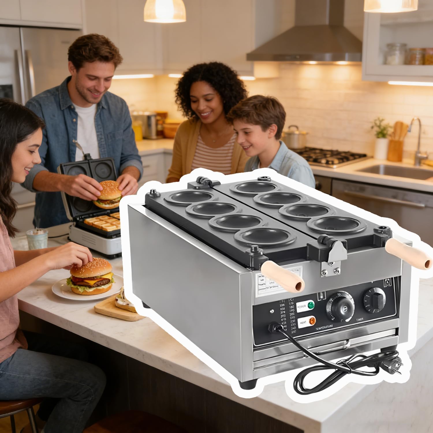 Macchina per hamburger elettrica UFO ad alta potenza 2000W 3000W con 6 stampi antiaderenti doppio riscaldamento 50-300°C per burger e ice cream sandwich uso commerciale 6 slot