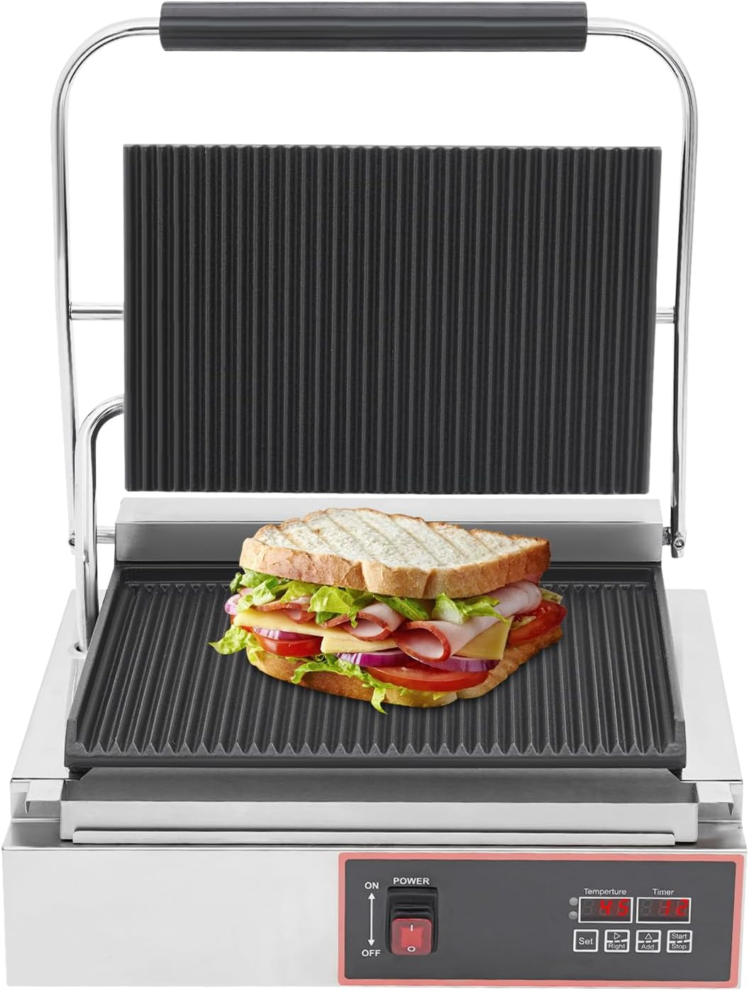 Tostapane e pressa elettrica commerciale doppia antiaderente 50-300°C con piastre scanalate doppia faccia per panini sandwich hamburger uso professionale CAFIEDR