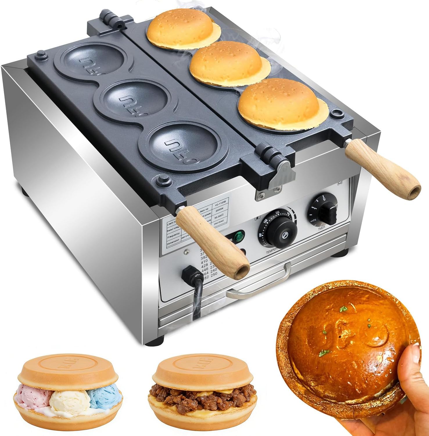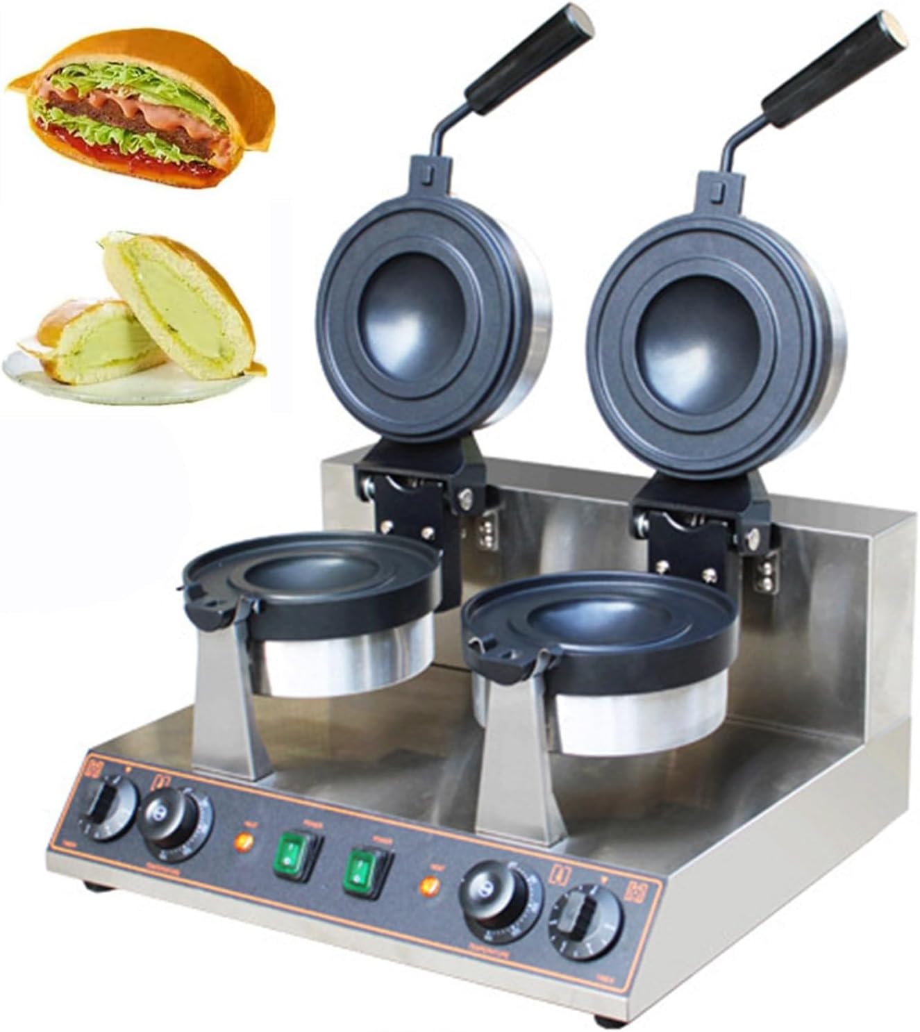 Macchina per hamburger elettrica professionale UFO in acciaio inox 2000W doppio riscaldamento stampi in alluminio antiaderente controllo temperatura 50-300°C per burger e ice cream sandwich