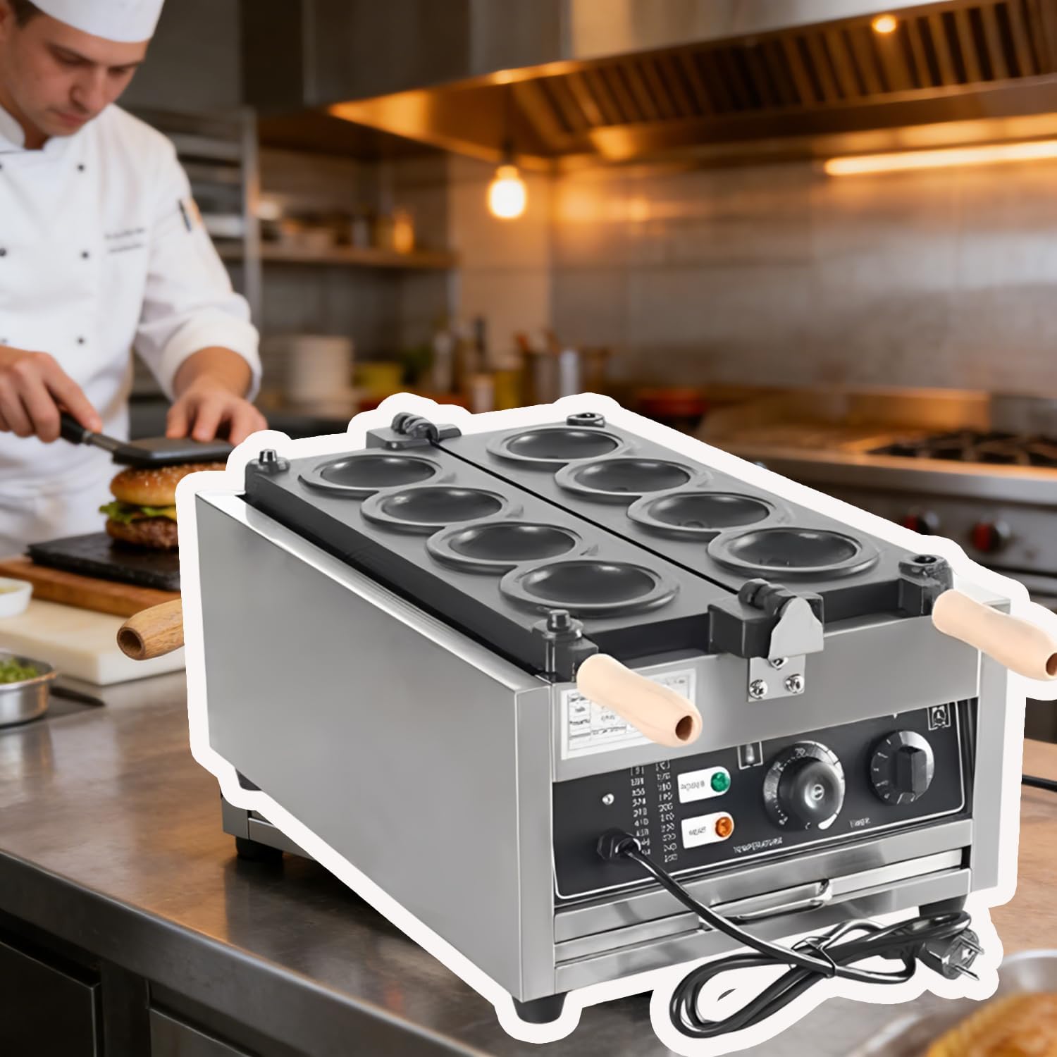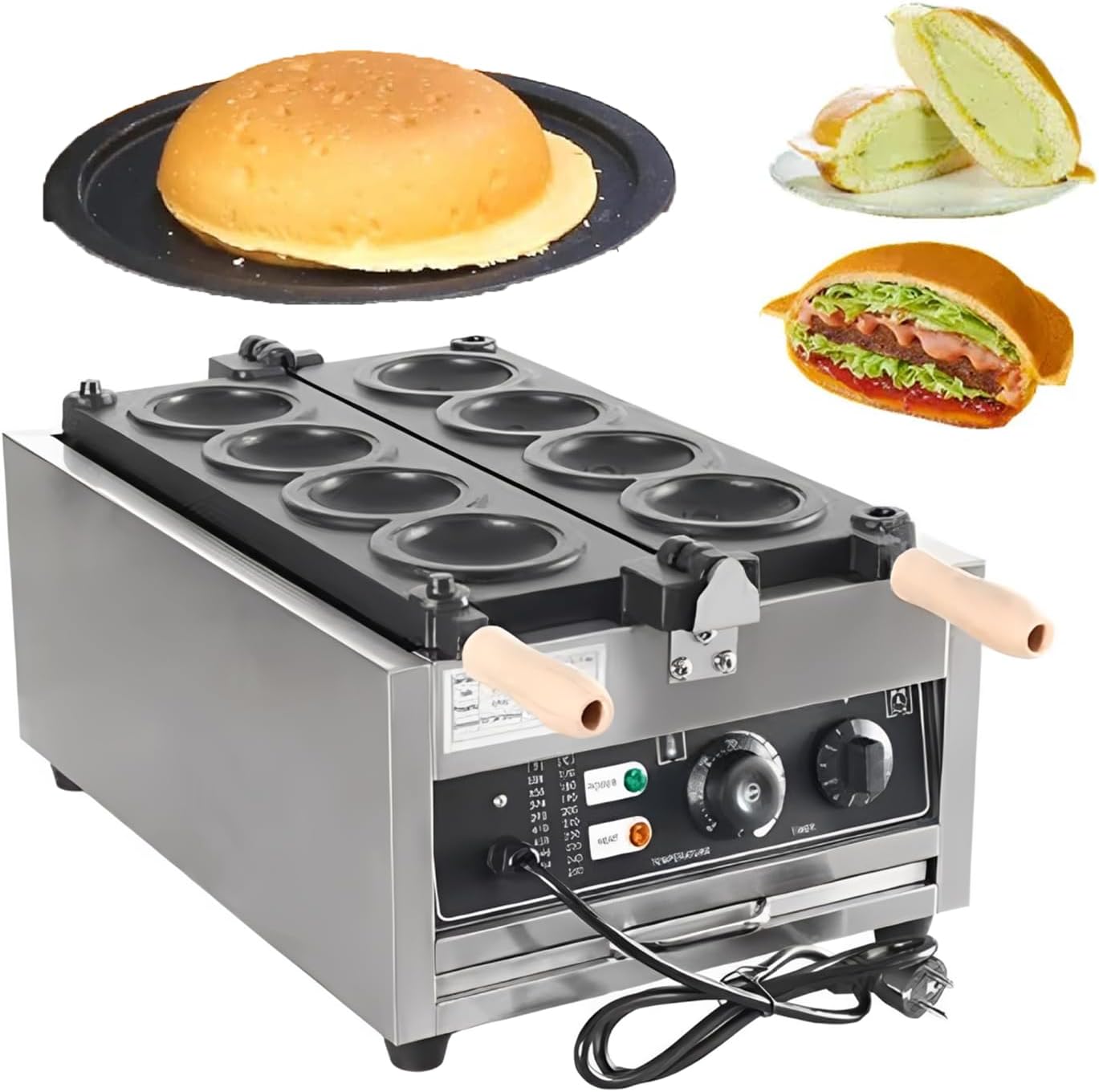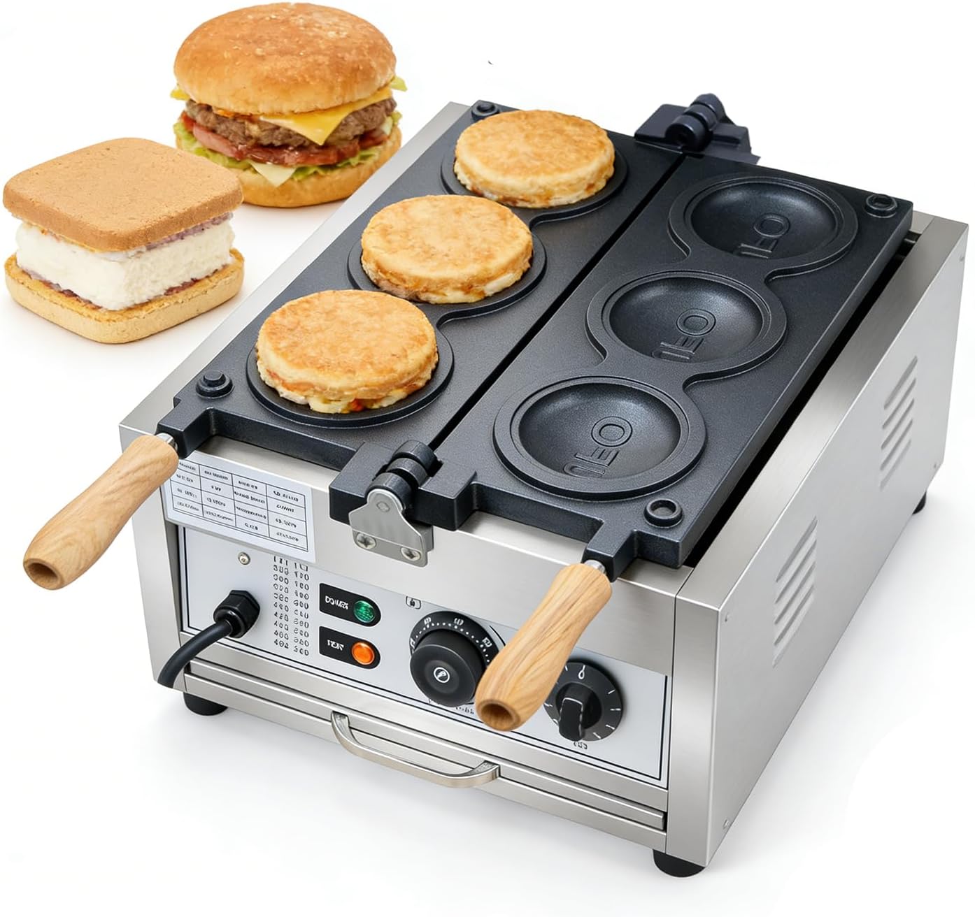 Macchina per hamburger elettrica UFO professionale 8 stampi 3000W doppio riscaldamento piastre antiaderenti controllo temperatura timer 50-300°C per ice cream sandwich bar pasticceria