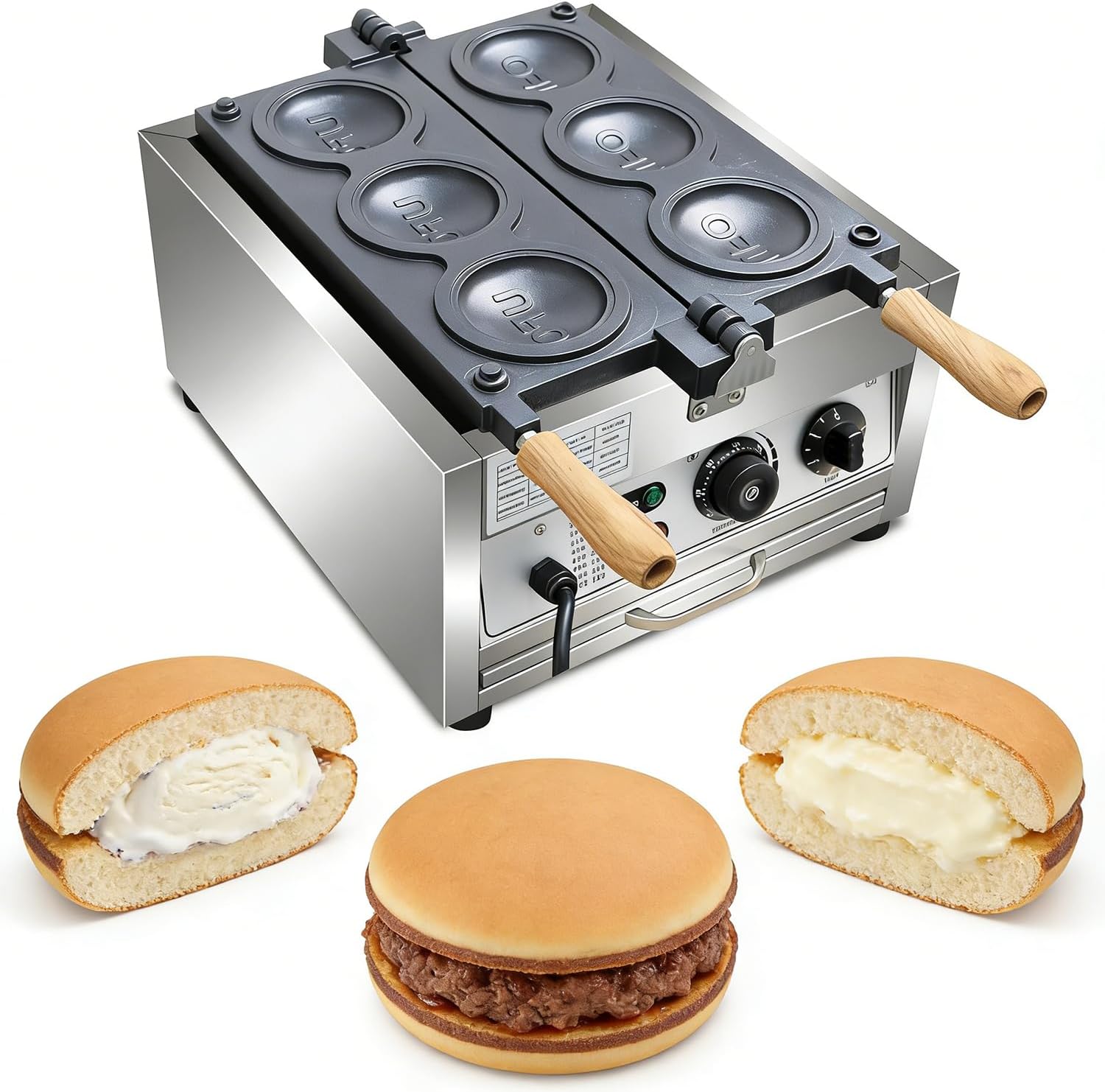 Macchina per hamburger elettrica UFO professionale 6 stampi 2000W doppio riscaldamento piastre antiaderenti controllo temperatura timer 50-300°C per ice cream sandwich bar pasticceria