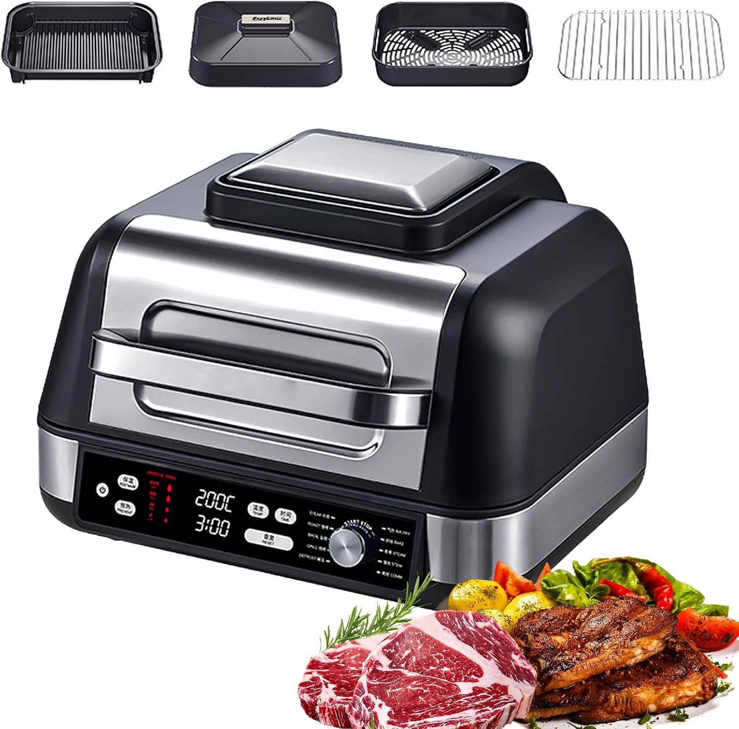 Griglia elettrica multifunzione 1750W senza fumo 10 in 1 con controllo temperatura piastre antiaderenti per steak pollo pizza uso domestico interno