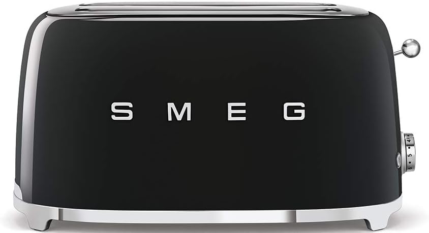 Smeg tostapane 2x2 TSF01BLMEU nero con 2 scomparti da 36 mm 6 livelli di doratura funzioni riscaldamento scongelamento bagel espulsione automatica e cassetto raccoglibriciole 950 W