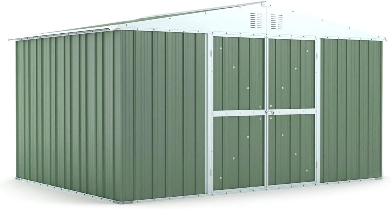 La struttura metallica offre una soluzione funzionale per riporre utensili da giardino, macchinari compatti, materiali stagionali e accessori outdoor. Il colore verde si integra facilmente negli spazi esterni, mentre la superficie generosa consente una migliore gestione del deposito in ambito residenziale