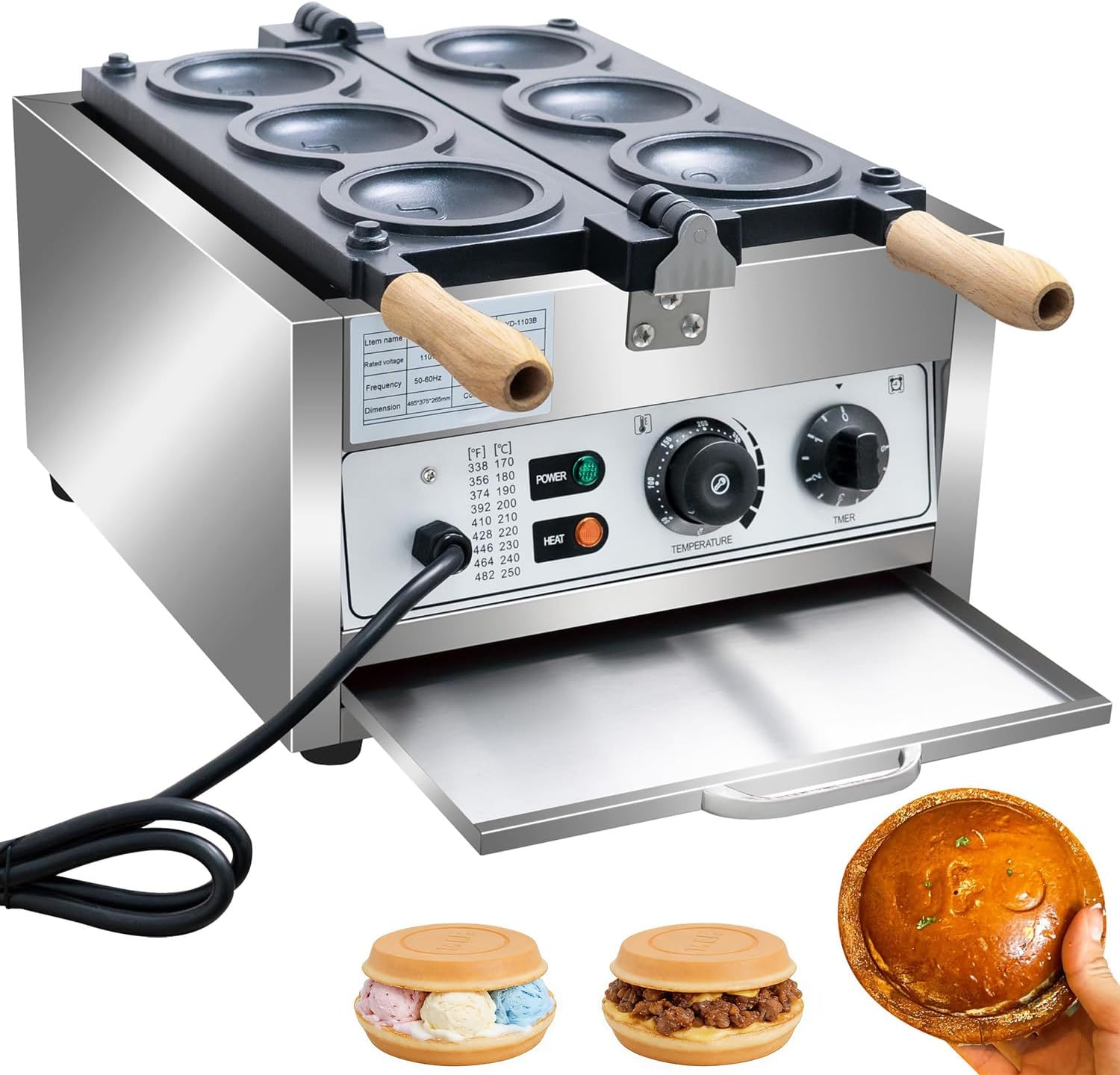 Macchina per hamburger elettrica professionale UFO 6 stampi riscaldamento rapido controllo temperatura 50-300°C corpo in acciaio inox per ice cream burger e sandwich commerciale