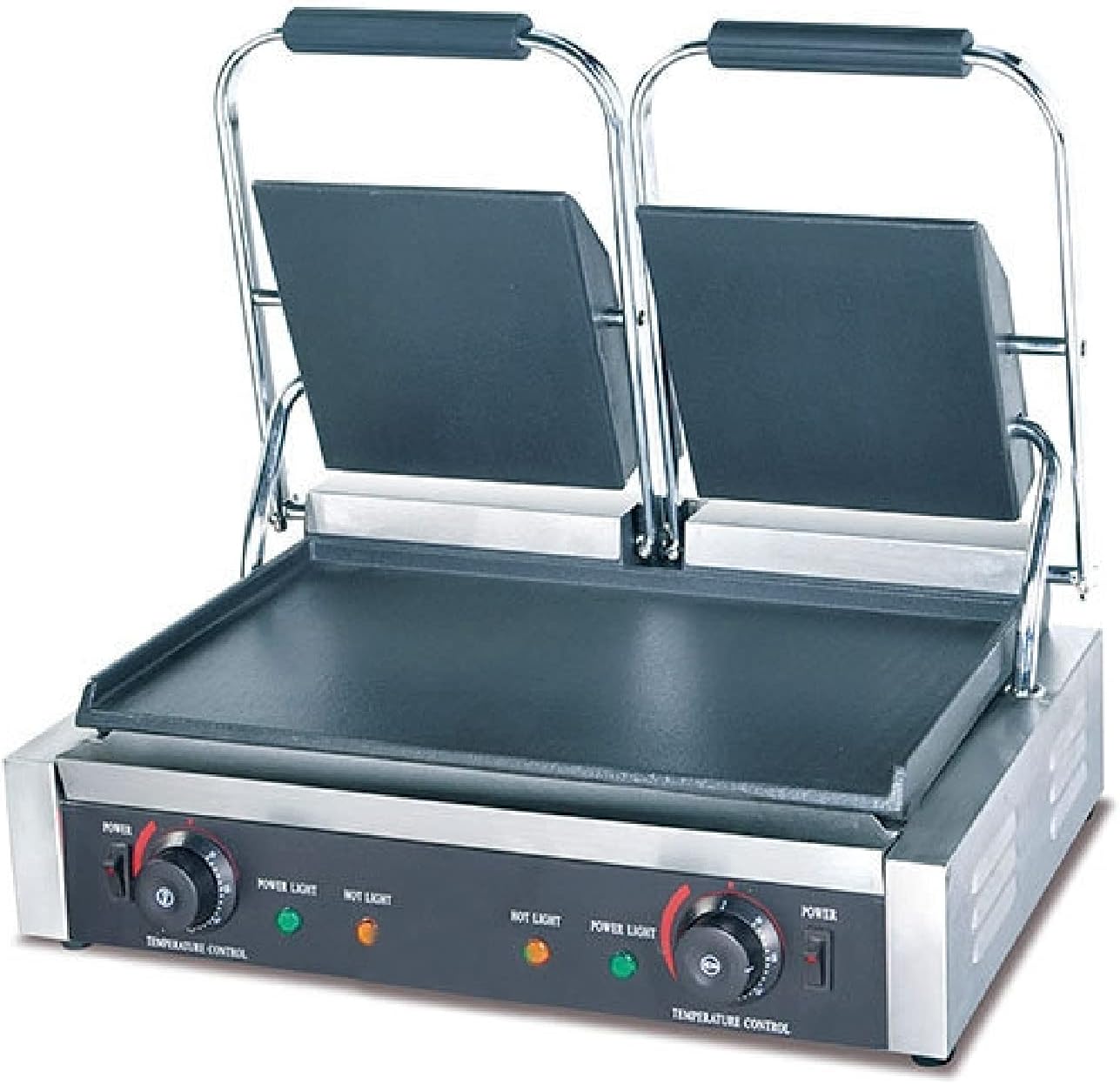 Piastra panini elettrica professionale Ristoattrezzature progettata per la cottura uniforme di panini, toast e snack caldi in ristoranti, bar e attività di ristorazione. La configurazione doppia liscia liscia e le dimensioni di 57x37x21 cm la rendono adatta a un uso intensivo su banco professionale