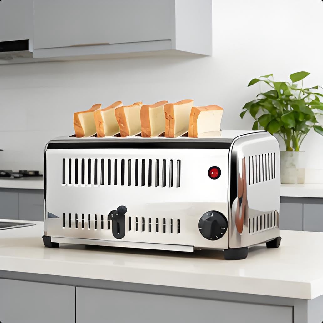 Tostapane commerciale ad alta potenza 3200W per 6 fette in acciaio inox con timer 1-5 minuti e vassoio raccogli briciole per uso domestico ristoranti e panetteria