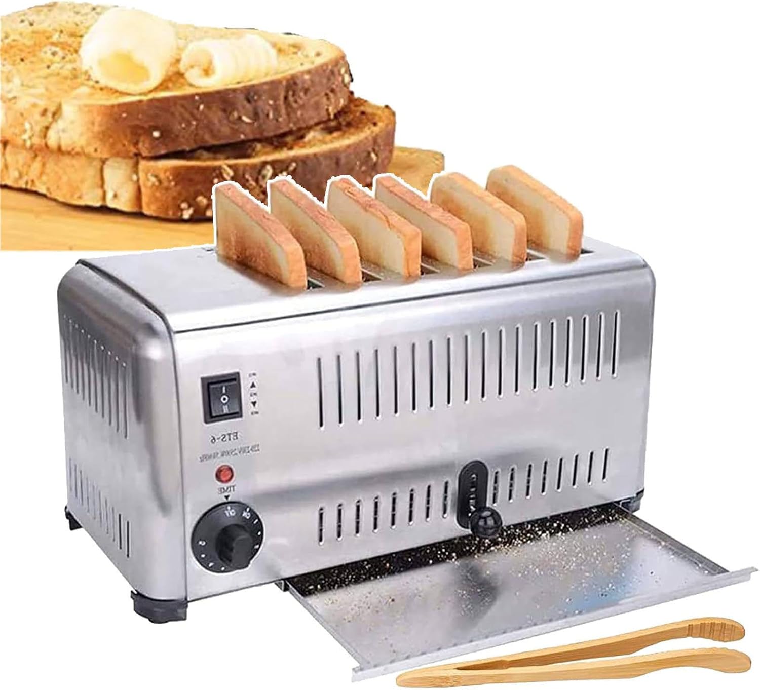 Tostapane commerciale in acciaio inox 6 fette 2500W con scomparti extra larghi 5 velocità regolabili tostapane a scomparsa per hamburger bagel e pane uso professionale e domestico